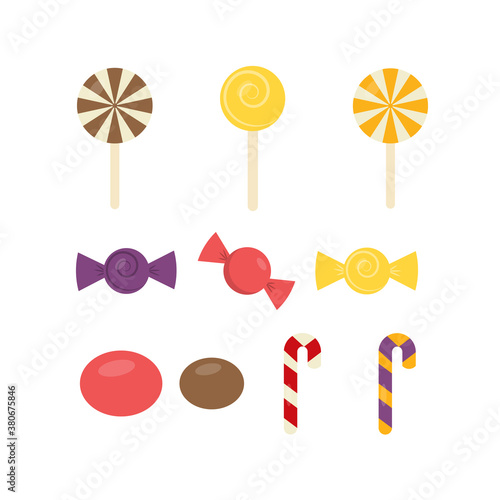 Candy vector. Christmas peppermint lollipop icon. Isolated round swirl spiral sweet caramel on stick standing in sugar icing. Homemade confectionery on white background