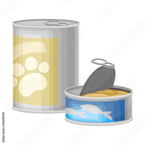 Canned sweet corn organic product package mockup set, vector illustration isolated on white background. Realistic opened tin cans with label and without it.