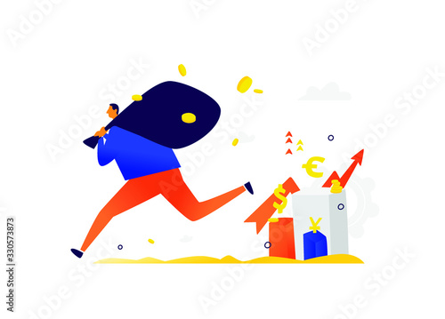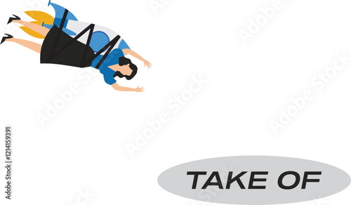 Capoeira fighter shows his skills, doing back flip in the air. Brazilian national martial art. Flat design vector illustration