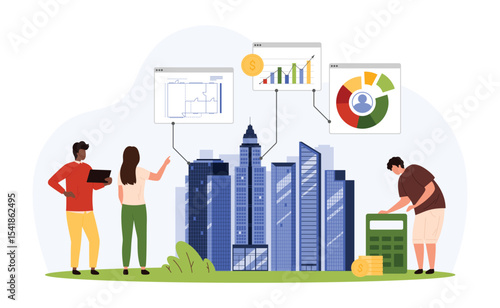 Car accident on the road, flat vector illustration. Police officer talking to female driver that crashed her car into traffic light.