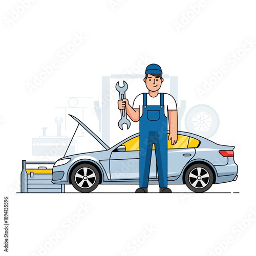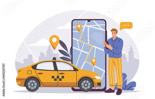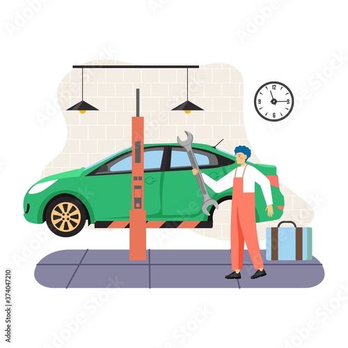 Car pawnshop services, flat vector illustration. Customer getting money in exchange for car key. Pawn shop loan.