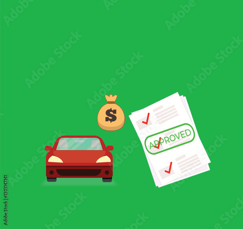 Car sale vector illustration. Customer buying car from dealer concept. Salesman giving key to new owner. Hand holding money.
