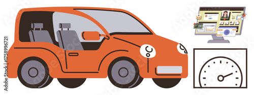Car sale vector illustration. Customer buying car from dealer concept. Salesman giving key to new owner. Hand holding money.