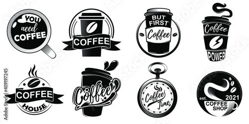 Vector set of vintage car service logos, emblems, badges, symbols, icons isolated on white background. Typography design for auto repair, car wash business and print.