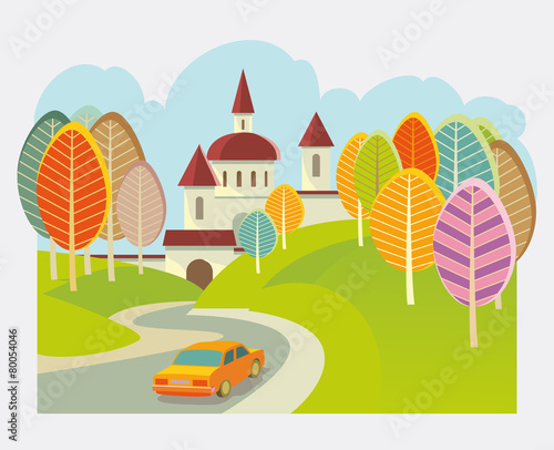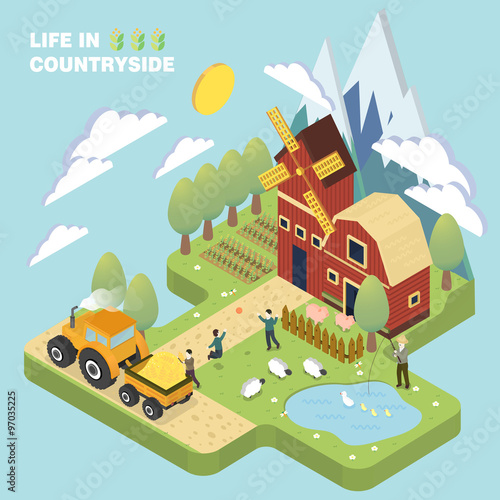 Car travel and camping isometric concept. Vector illustration in flat 3d style. Outdoor camp activity. Travel on camper.