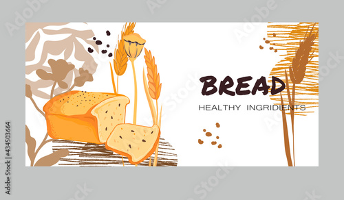 Carbohydrate food concept. Pasta, wheat bread, whole grain, seeds, potato, carbs diet. Vector web site design template. Landing page website concept illustration.