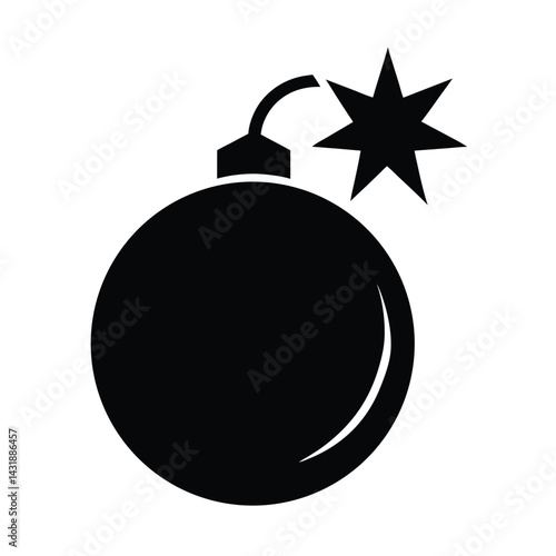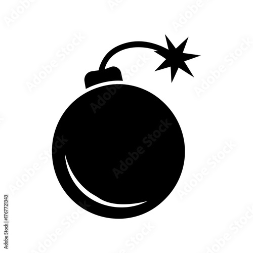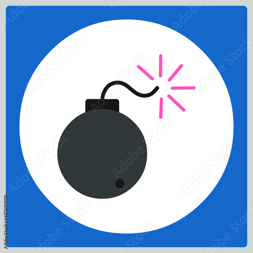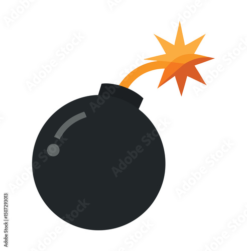 Cartoon black cannon bomb ball with burning explosive wick vector icon illustration isolated on white background