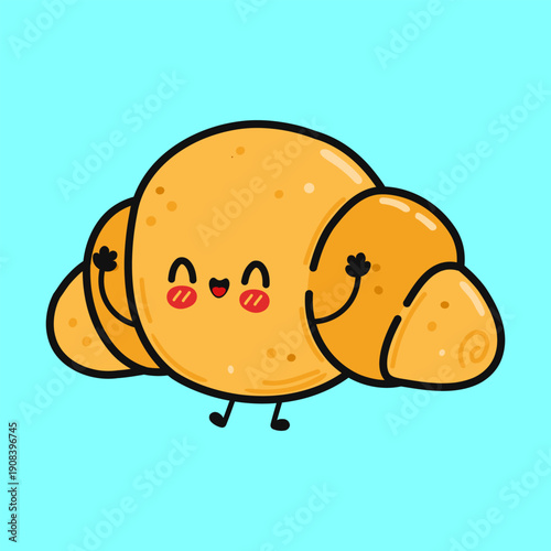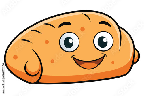 Cartoon cute bakery character. Bun isolated vector. Funny sweet snack food face illustration. Pastry with chocolate glaze and anthropomorphic comic facial expression isolated on white background