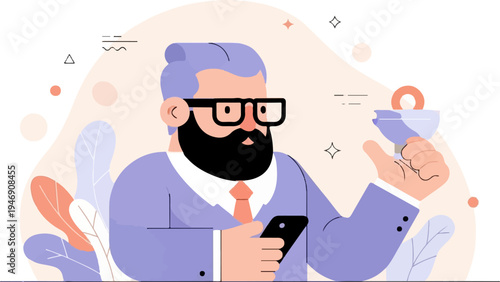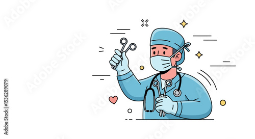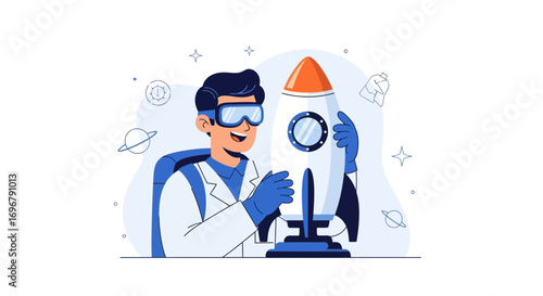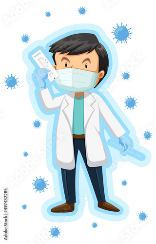Cartoon scientist with a flask. Vector illustration. Science for kids.