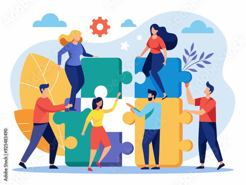 Micro female characters feeding, combing and stroking huge beautiful cat, vector illustration. Pet care, cat supplies, grooming services concept for web banner, website page etc.