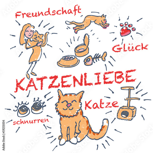 Vector illustration of woman playing with cat. Pet owner and her kitten flat style design element, icon isolated on white background.