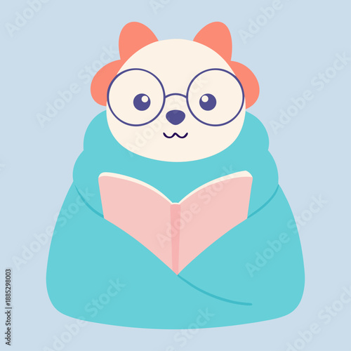 Cat under blanket with coffee cup vector. Cute animal warmth under comfort plaid with hot tea drink icon. Cartoon character under cover illustration isolated on white background