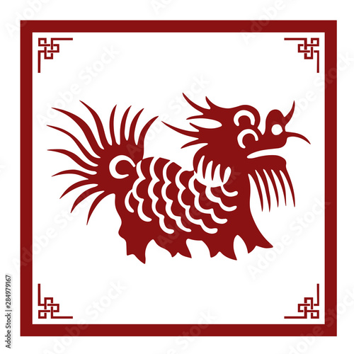 Happy cat white silhouette in red heart shape pet animal paw print, vector illustration in paper art style. Pet shop, shelter, vet logo design template.
