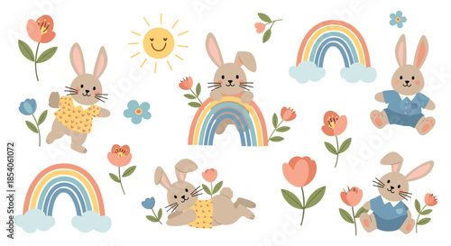 Cats yoga icon set. Cute color cats doing yoga poses. Vector illustration isolated on white background.