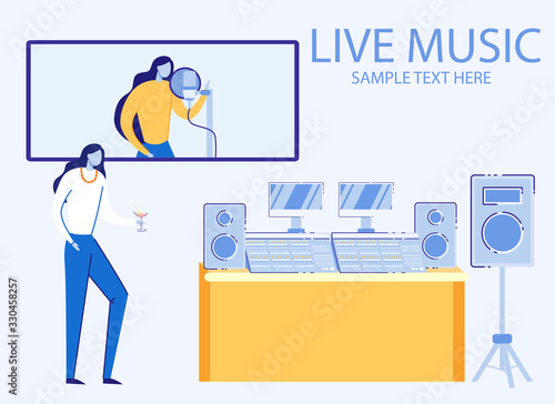 Young man in headphones playing and mixing music using DJ mixer decks, vector flat illustration isolated on white background. Happy birthday anniversary corporate party or other event celebration.
