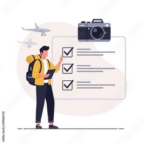 Cheap international flight ticket offers, flat vector illustration. Online flight mobile booking service. Travel by air.