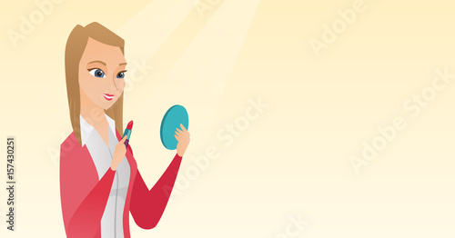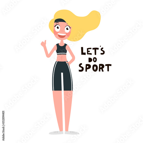 Vector illustration of cute girl cheerleader holding red pompom. School people concept flat style design element, icon isolated on white background.