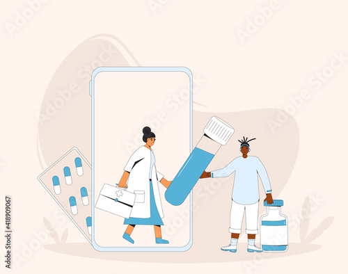 Food blog. Chef teaching woman follower to cook vector. Female watching video tutorial on mobile phone learning new dish recipe preparation