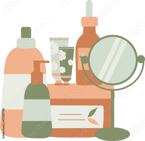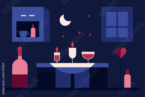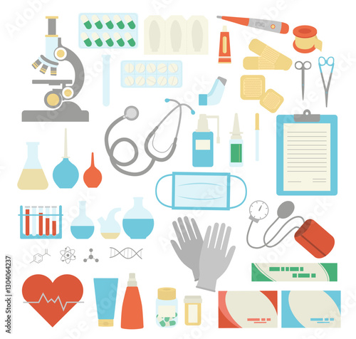 Science lab vector poster template. Chemistry laboratory interior with microscope, flasks, beakers and burner on shelves. Equipment and glassware for laboratory experiment, flat style illustration.