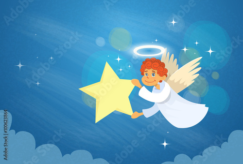 Child touching the stars in the sky. Kids dream vector illustration in paper art origami style. Paper cut design concept. Fairy tale wallpaper in baby room.