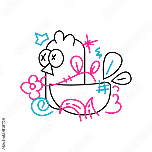 Cute Christmas cat vector. Funny winter pet character for holiday card doodle design. Xmas kitten surprise present sitting in gift box isolated on white background