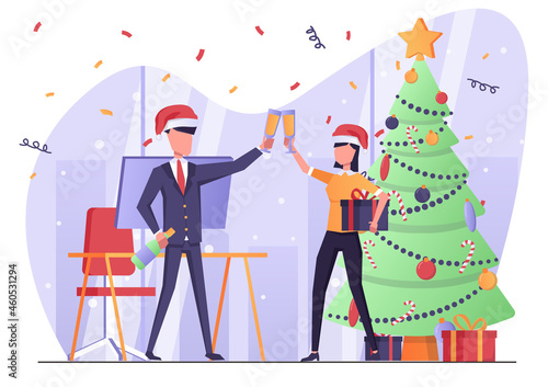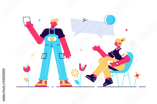 People making snowman, vector illustration. Preparation for Christmas and New Year celebration composition for poster, banner, website page etc.