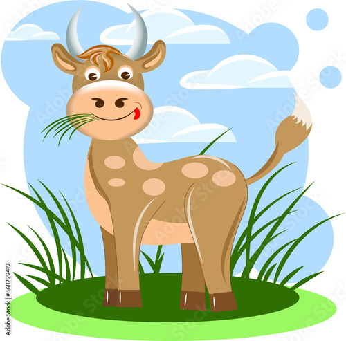 Christmas cow character with mistletoe tree wreath on head vector icon isolated on white background.