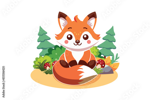 Christmas card cute animal vector icon. Red fox with holly berries mistletoe tree decoration. Happy new year and merry xmas winter holiday invitation postcard design. Isolated on white background