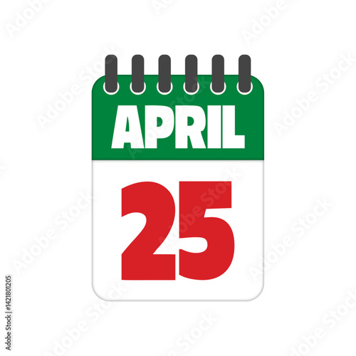 christmas twenty-fifth calendar date vector icon isolated on white background.