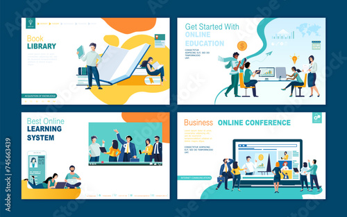 Chroma key studio, landing page design, website banner template set, flat vector illustration. Actor astronaut starring in space movie. Green screen technology. Film production.