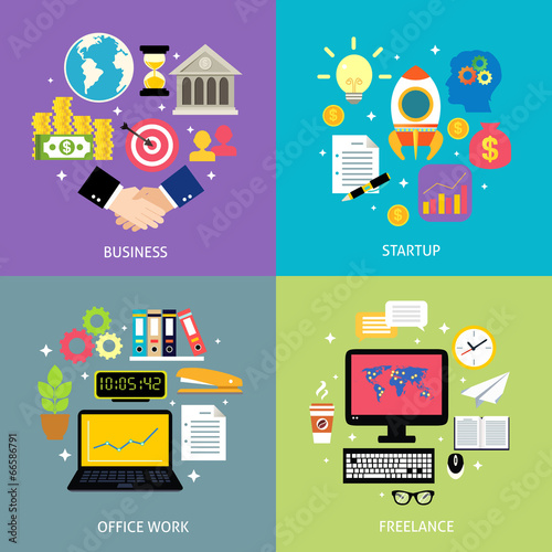 Cinema industry vector flat illustration. Screen with play button, camcorder, tickets, globe, popcorn, 3d glasses. Cinematography concept for web banner website page etc