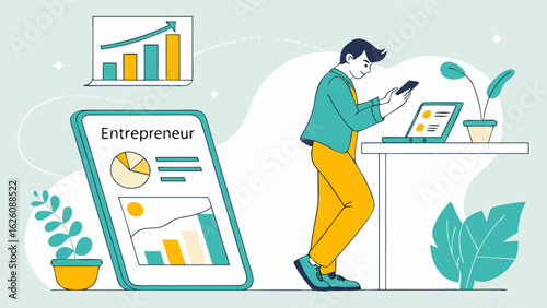 Cinema self service terminal. Man buying movie ticket at self service kiosk, vector illustration. E-ticket machine.