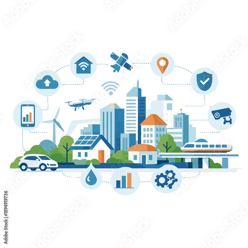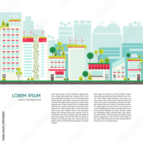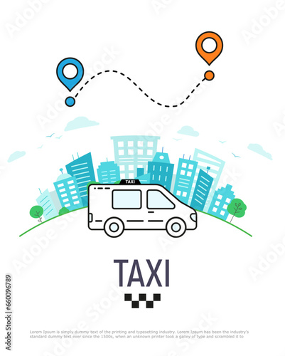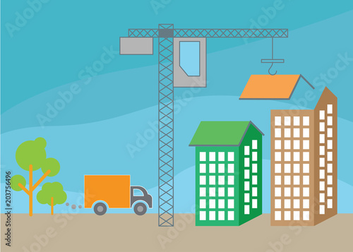 City drone delivery concept vector illustration. Quadcopters transporting packages, food or other goods. Flat linear style design poster, flyer for drone delivery company.