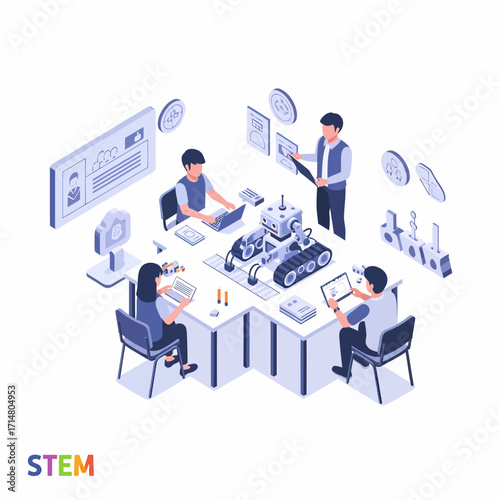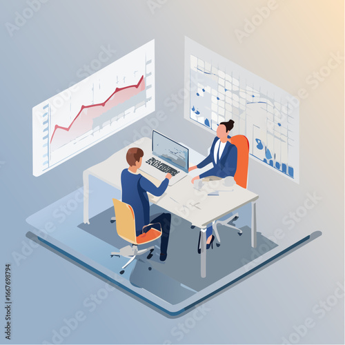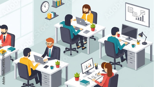 City planning and urban development process. Professional team of architects making, analyzing and discussing building project. People meeting for cityscape creation isometric vector illustration