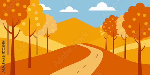 City skyline, orange sunset landscape, vector illustration. Beautiful cityscape evening view. City park, urban buildings.