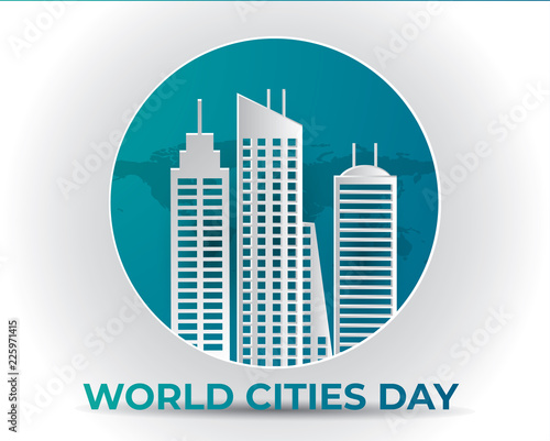Vector illustration of city skyline background. Travel poster with flat linear style architectural buildings, skyscrapers, welcome lettering and place for text.