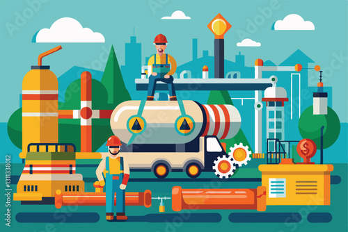 Vector set of city street concept design elements. Urban street with taxi stand, cafe, park and embankment with ice cream truck and coffee bike, people taking rest, buying food. Flat style design.