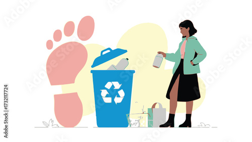 Janitor man throwing garbage bags into brown trash can recycling container, vector flat illustration isolated on white background. Cleaning company service concept for web banner, website page etc.