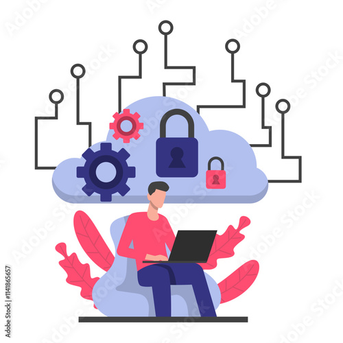 Cleaning company services vector flat style design illustration. Spring house cleaning concept with big vacuum cleaner and tiny characters for web banner, website page etc.