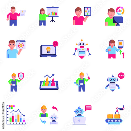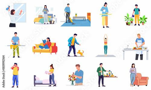 Vector illustration of cleaning ladies and cleaner males at work. Cleaning company people symbols, icons isolated on white background. Flat style design.