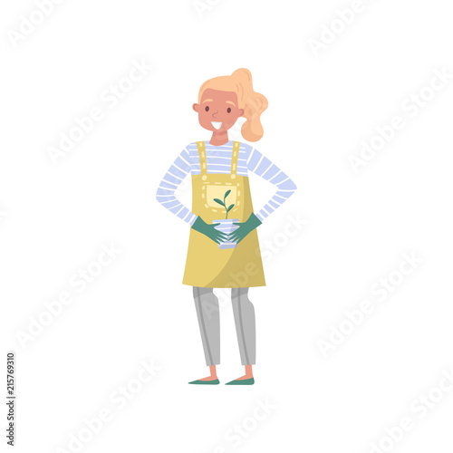 Vector illustration of woman holding suit after ironing. Cleaning people flat style design element, icon isolated on white background.