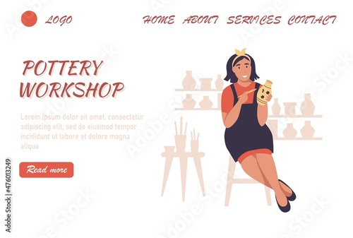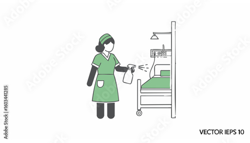 Vector illustration of cleaning lady ironing clothing with steam iron. Cleaning people flat style design element, icon isolated on white background.