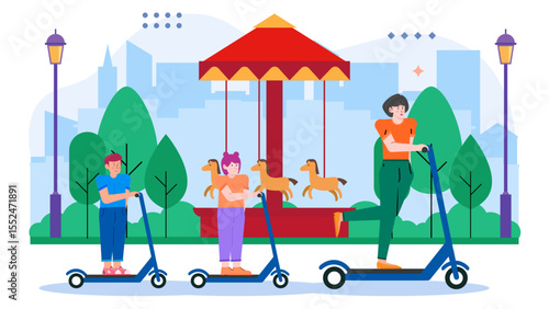 Professional home cleaning services, vector flat illustration. Male and female characters, cleaning company staff dusting home appliances and furniture, vacuuming carpet in living room.