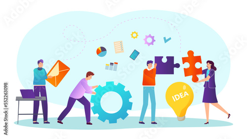 Garbage truck, recycle bin and male characters street cleaners collecting trash, vector illustration. Cleaning street concept for web banner, website page etc.