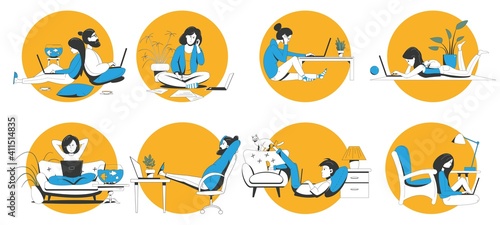 Diverse smart people round frame vector illustration. Clever male and female student avatar set isolated on white background. Icon collection with face portrait of cheerful guys and girls