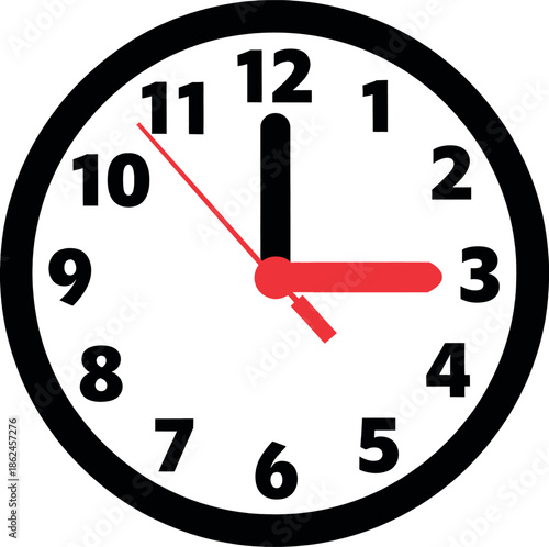Clock face vector. Time watch icon. Round wall office alarm timer with arrow pointer for minute and hour countdown isolated on white background