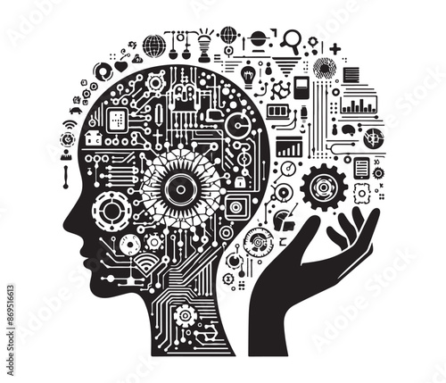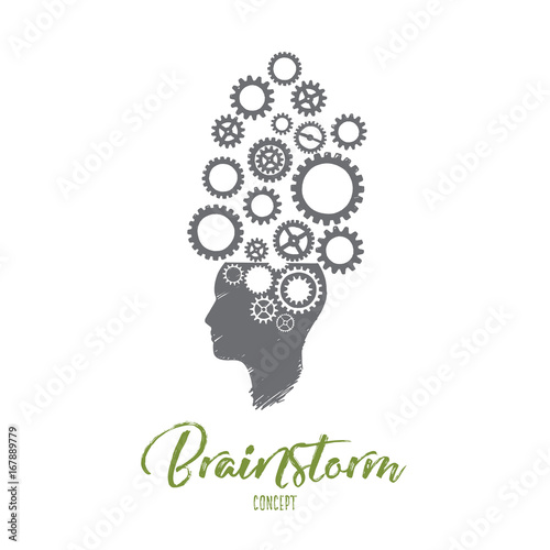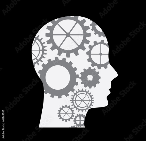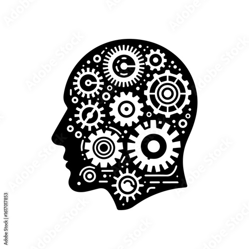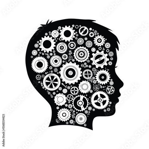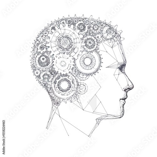 Human head with cogwheel gear clock mechanism, vector illustration in paper art modern craft style. Thinking, making decision concept, steampunk style.