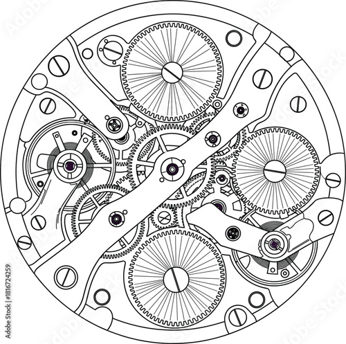 Mechanical clock or watch with cogwheel gear mechanism, vector illustration in paper art modern craft style. Steampunk style clock.
