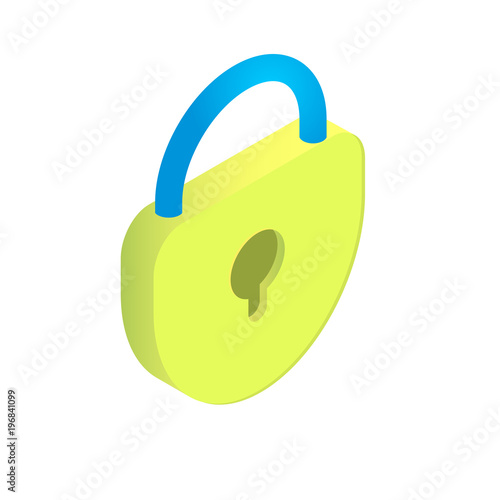 Close and open lock vector icon. Isometric shield shape locker with keyhole isolated on white background. Access control and protection, cyber security