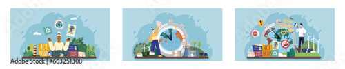 Closed country borders due to coronavirus pandemic, flat vector illustration. Avoid travel. Quarantine restrictions. Spread of corona virus Covid-19 disease prevention.